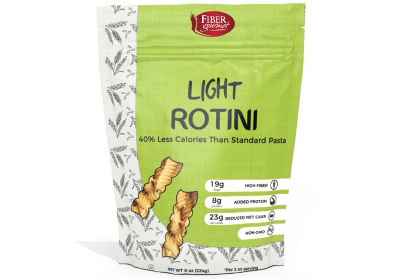 Half the calories of regular pasta, but tastes the same; you cannot tell the difference. Regular pasta is so high in calories that even though this product is half the calories, it is still high calorie. Portion control is very important when using this product, and it would need to eaten with a protein.