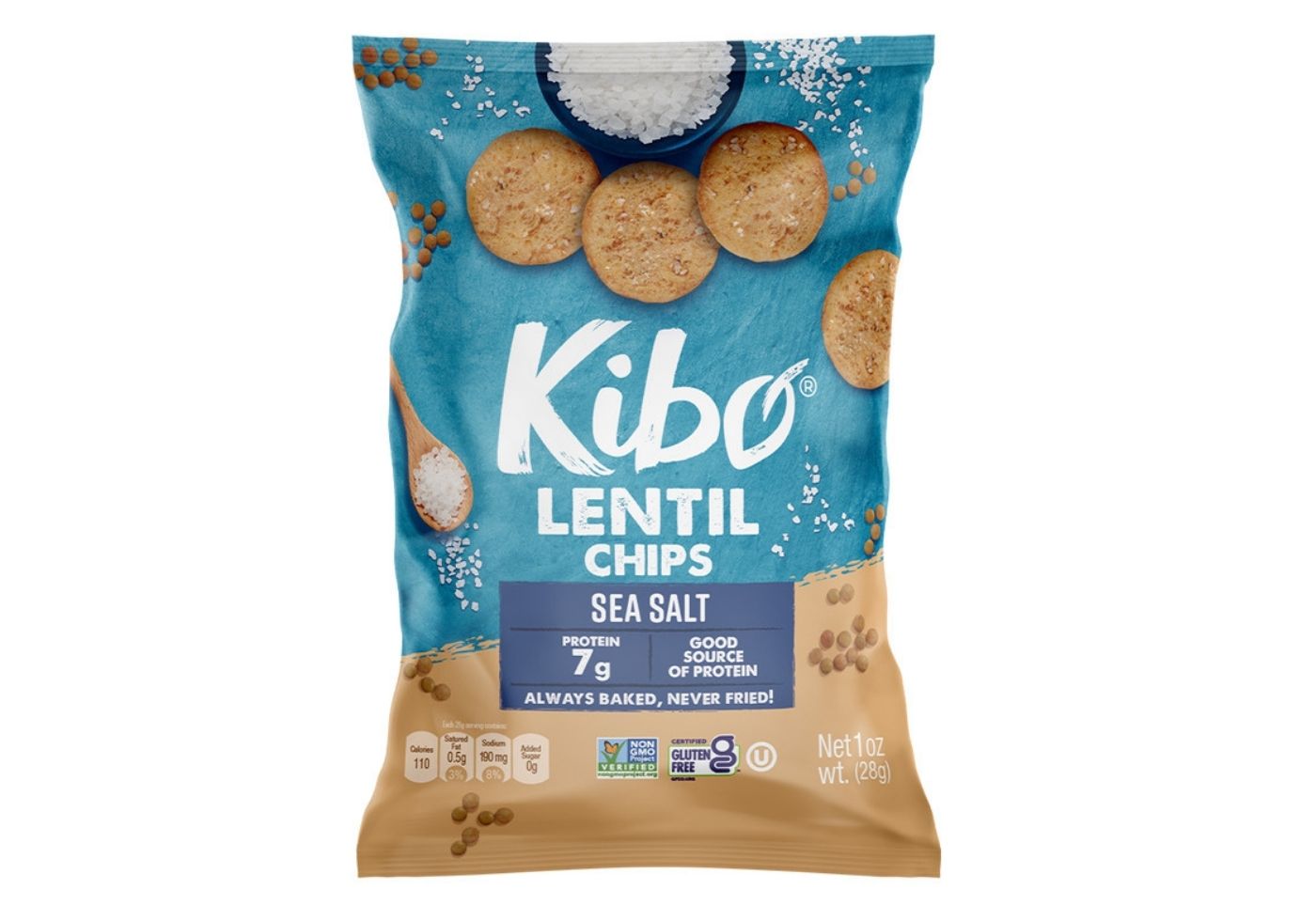 High protein, salty, crunchy snack. It tastes like something in between a rice cake and potato chip.
